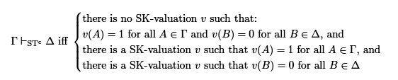 and the corresponding semantic definition for our system—unsurprisingly, a refinement of the model-theoretic definition of ST consequence discussed in the previous section.