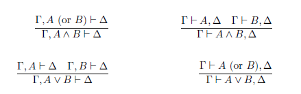 A∧¬A⊢∅ ∅⊢A∨¬A