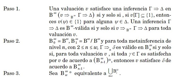 Extensional (amp). Una lógica L es un conjunto de inferencias y metainferencias ULi, donde Li es una lógica inferencial cuando i = 0 y una lógica metainferencial de nivel i cuando 1 ≤ i ≤ w.