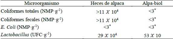 1. La fermentación de heces de alpaca, lactosuero bovino, melaza y B-Lac en proporción 40: 40: 15: 5, respectivamente, genera en 5 días un abono líquido inocuo, de alta calidad nutricional, con adecuados caracteres organolépticos y estable en el tiempo (Alpa- biol); siendo necesario diluirlo al 0.1% para neutralizar los efectos fitotóxicos de su elevada acidez y salinidad, para su uso en campo.