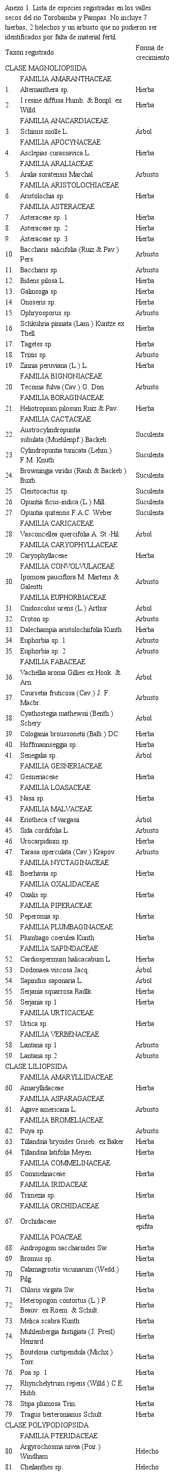 CONTRIBUCIÓN A LA FLORA VASCULAR Y VEGETACIÓN DE LOS VALLES SECOS INTERANDINOS DE LOS RÍOS TOROBAMBA (AYACUCHO) Y PAMPAS (APURÍMAC), SUR DEL PERÚ
