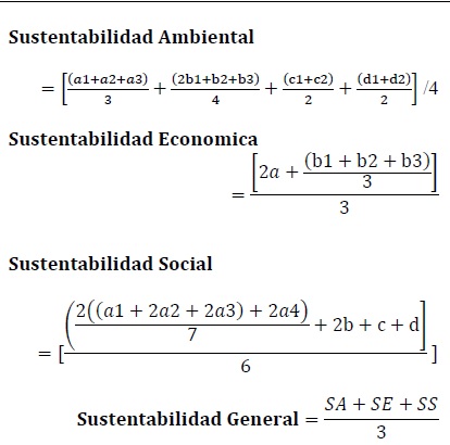 Sustentabilidad general: Como se ha señalado anteriormente, Sarandón (2002) propuso que para que una finca pueda ser considerada sustentable, el índice general (IGen.) debe ser mayor a 2; pero considerando que ninguno de los tres indicadores debe tener un valor menor a 2.