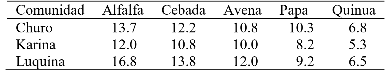 - El cultivo que tuvo mayor pérdida económica fue la alfalfa en Luquina chico con 22.1%, seguido de la cebada y avena y en rangos menores la papa y quinua con 5.7%, la misma secuencia de daño en el tipo de cultivo tuvieron las 3 comunidades evaluadas.