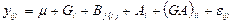 Y = Valor del carácter estudiado; A = Efecto de ambiente; μ = Media general; (G A)il = Efecto de la interacción genotipo ambiente; G = Efecto de genotipo; εijl = Error experimental; Bj(l) = Efecto de bloques dentro de ambientes.