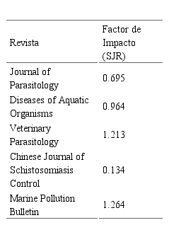 La Tabla 1 muestra las cinco revistas que publican estudios sobre parásitos en playas, con su factor de impacto.