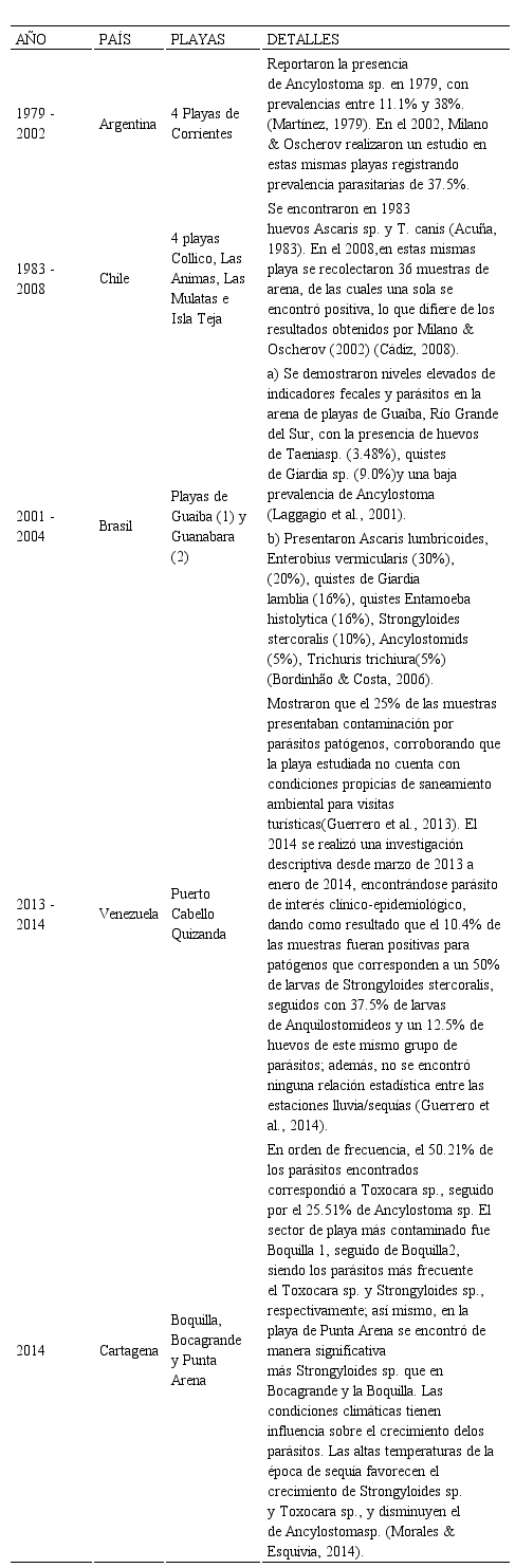 PARÁSITOS EN PLAYAS TURÍSTICAS: PROPUESTA DE INCLUSIÓN COMO INDICADORES DE CALIDAD SANITARIA. REVISIÓN PARA AMÉRICA LATINA