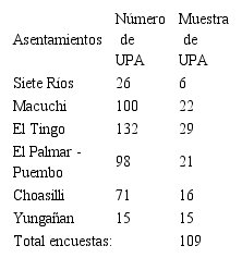 Tipos de unidades productivas agropecuarias (UPA) de la Parroquia El Tingo La Esperanza.
