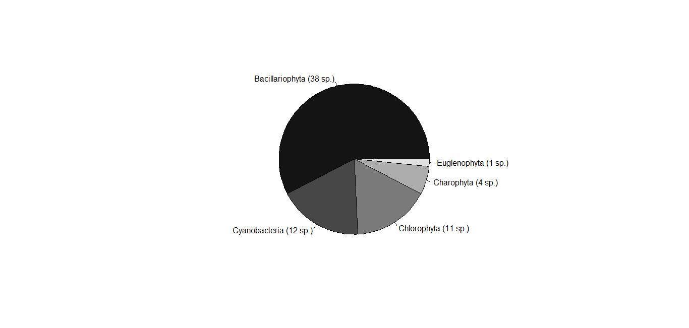 Los parámetros numéricos de los cuadrantes con presencia y ausencia de renacuajos no mostraron diferencias significativas (p > 0.05, Kruskal Wallis). Los 34 renacuajos de T. macrostomus fueron encontrados a menos de un metro de la orilla (100%, n = 29), en sustrato tipo limo (93%, n = 27), arcilla (3.5%, n = 1), grava (3.5%, n = 1), corriente baja (100%, n = 29), también en áreas con presencia de vegetación acuática sumergida como Myriophyllum sp. “cola de zorro”, emergentes como Hydrocotyle sp. “sombrero de sapo” y Scirpus sp. “totora”. También estaban presentes junto a peces del género Orestias (93%, n = 27) y una alta diversidad de diatomeas - phylum Bacillariophyta (Figura 2, Tabla 3). Los renacuajos no fueron encontrados con T. oroyae (0%, n = 29) u O. mykiss en ninguna de las estaciones evaluadas.