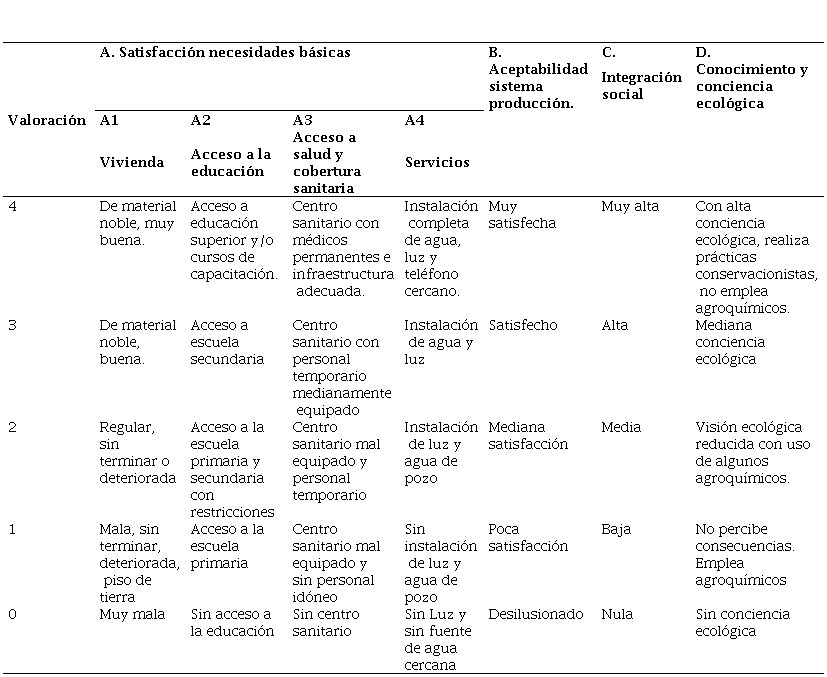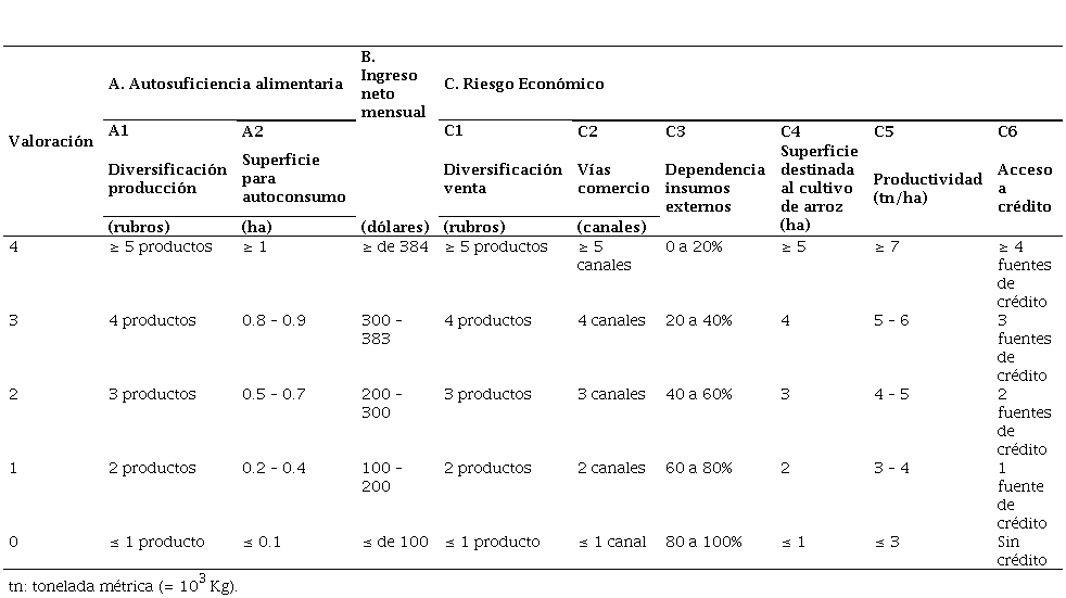 La experiencia de dirigentes arroceros de las comunidades en estudio, y representantes de instituciones de investigación del sector arrocero, permitió evaluar y ajustar los indicadores y subindicadores propuestos por Sarandón et al. (2006), los cuales fueron adaptados al cultivo de arroz en la zona de estudio.