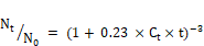 N.: Número de organismos coliformes en el instante t. Considerándose el valor final deseado de 10. coliformes fecales/100 ml de agua residual, considerado como indicativo de que todos los patógenos han muerto. Esto con el fin de dar un margen de seguridad al límite de < 1 000 coliformes fecales/100 ml, establecido en las Directrices sobre la calidad microbiológica de las aguas residuales empleadas en agricultura (OMS, 1989).