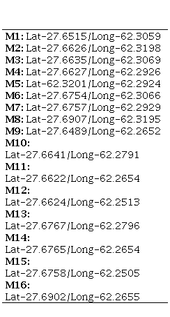 Sixteen sampling points (M1 to M16) were located, twelve samples were taken in central paddocks and four in peripheral paddocks (Figure 1 right). Each sampling polygon covers four pixels of NDVI MODIS250, covering 21.6 pure hectares of M. maximus pastoral systems throughout the period analyzed. The Lat/Long coordinates of the sixteen sampling points are shown in Table 1 and Figure 1 (right).