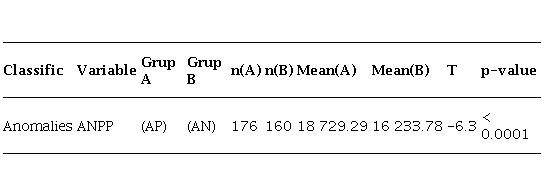 Significant differences were found between ANPP-Season of growing season with anomalies rainfall positive and anomalies rainfall negative (Table 2).