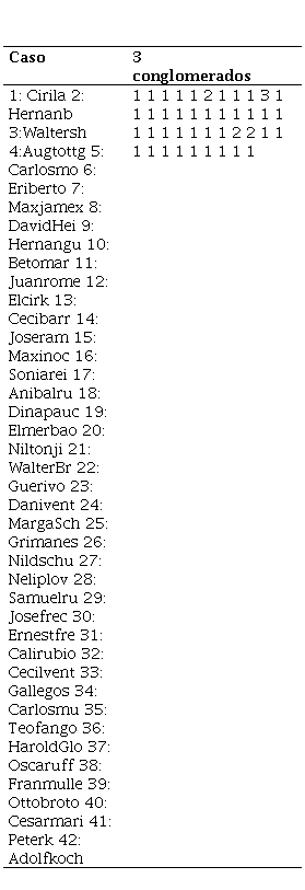 Mediante el programa SPSS, se utilizó la solución única de tres números de conglomerados, debido a que en el marco MESMIS existen tres sistemas pecuarios en evaluación, los cuales permitieron comparar los resultados si los mismos productores agrupados en el marco MESMIS están en los conglomerados del análisis multivariado.