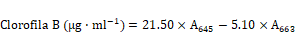 A663 y A645 corresponden a las absorbancias del extracto de clorofila en las longitudes de onda de 663 y 645 nm, respectivamente.