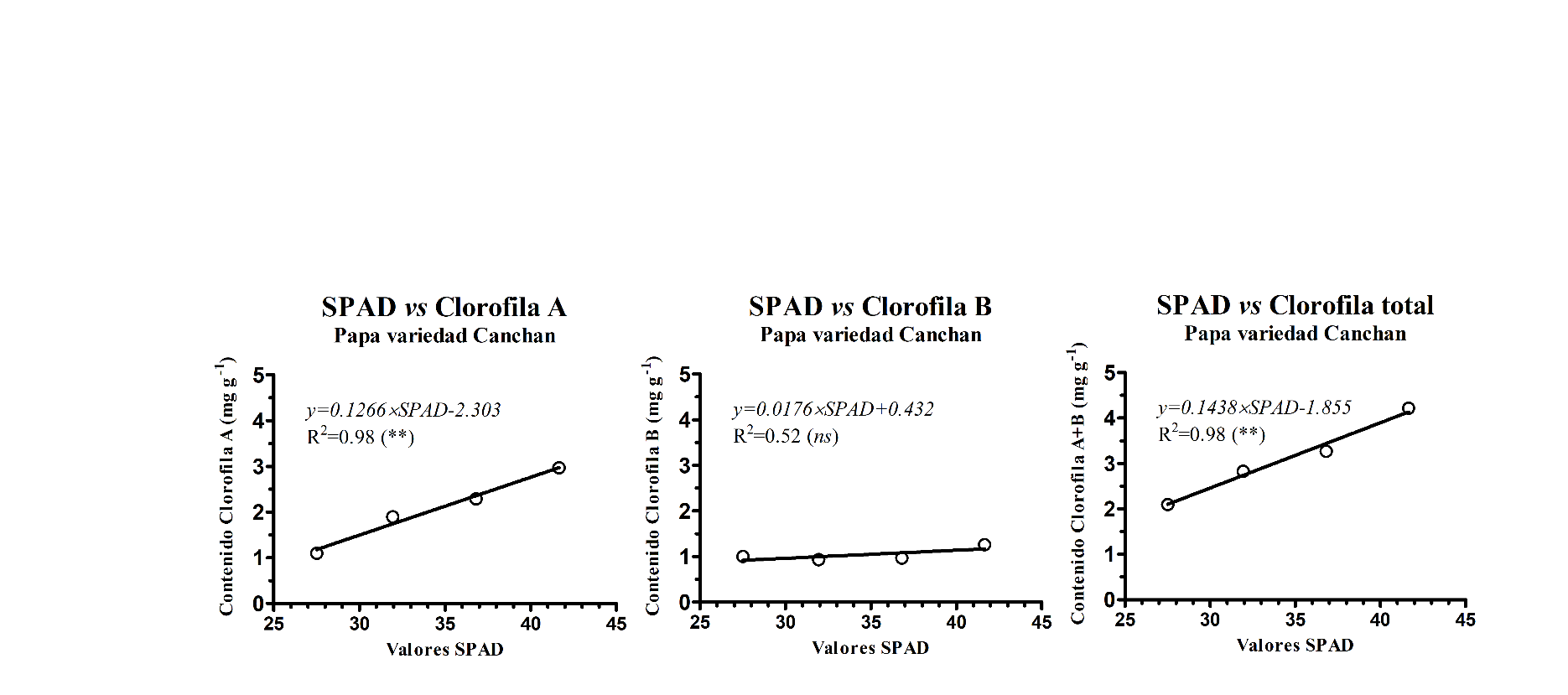 Validación de las unidades SPAD para estimar contenido de clorofila A, B y total en hojas de papa del cultivar Canchán