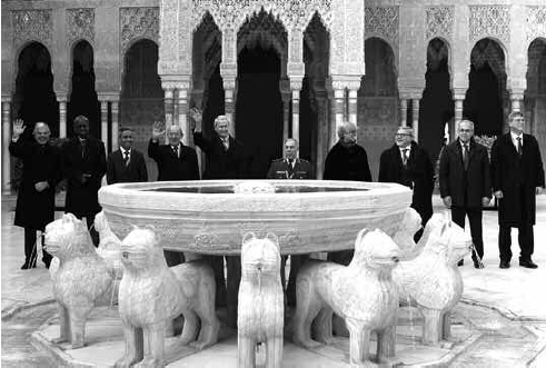 Nueve años más tarde, en diciembre de 2014, se volvió a celebrar en la Alhambra una cumbre internacional de perfil antiterrorista que ponía a su servicio el significado cósmico del Palacio de Carlos V. Se trataba de un encuentro en el que participaron representantes de los diez países del Mediterráneo occidental que constituyen el foro Iniciativa 5+5 Defensa.12 En esta cumbre, la amenaza del terrorismo yihadista —representada sobre todo por Al Qaeda en el Magreb, pero también por el naciente Estado Islámico— se amplió con nuevos temas de actualidad que afectaban directa o indirectamente a todas las naciones representadas; así se tomaron también acuerdos relativos a seguridad marítima y a la inmigración ilegal.