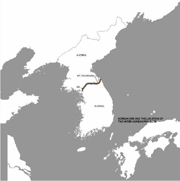 The built environment is a physical creation and embodiment of our culture; in return, it shapes how we live and think. Cities in conflict are clear examples of this reciprocal function, being both a manifestation of conflict and an instrument of addressing partisan identity. The Korean Peninsula is the most heavily armed region in the world and the only country still divided as a visible extension of the Cold War era. While the 1953 armistice agreement brought a temporary end to the Korean War, the conflict continues as the whole peninsula struggles both economically and politically. Continuing distrust and military clashes occurred until a major change came in 1998 with the implementation of the Sunshine Policy. This was an engagement policy initiated by former South Korean president Dae Jung Kim, for which he received the Nobel Peace Prize in 2000. Moon describes the Sunshine Policy as a proactive policy to induce incremental and voluntary changes in North Korea to create peace by way of reform through the patient pursuit of reconciliation, exchange and cooperation.1 This policy is fundamentally based on the German Ostpolitik, which is represented by Egon Bahr’s Change through Rapprochement.