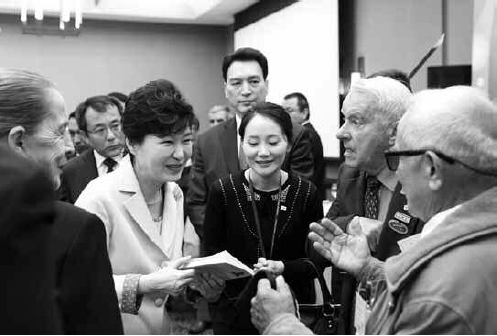 The proposed cultural center site would utilize the reconnection of the Kyung-Ui line, which was reopened in 2007 with a hopeful vision of connecting the Korean Peninsula to Eurasia by railways (fig. 3).33 Despite its limited usage, the reconnected railway could be a meaningful infrastructure to transport North and South Koreans to the DMZ Cultural Center in order to transform the neutral space of the DMZ into a place where there is a meaningful exchange between people in the two Koreas. The suggested special district for the DMZ Cultural Center is at the center of this grand connection (fig. 4); it also serves to encourage global attendance, considering that the Korean War involved 67 countries.34 For example, Colombia is one of many countries that sent soldiers under UN command. On April 2015, South Korean president Park visited Colombia and had a round table meeting with Korean War Veterans. In this meeting, Jesus Maria Novoa Martinez traveled 961km to deliver a letter to President Park, and in the letter he said, “I want to see Korea again before I die.” Park promised to invite him to Korea this year (fig. 5); it is estimated that about 1000 Korean War Veterans are still alive in Colombia today.