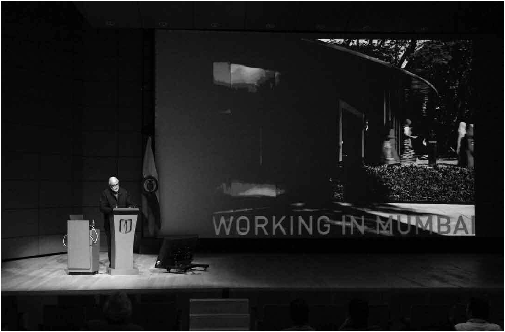El entorno altamente plural del paisaje de la India requiere mecanismos de planificación y diseño y actitudes que negocien continuamente entre las diferencias. Es entonces la arquitectura el único instrumento para la creación de lugares y temporalidades con condiciones para la vivienda y la celebración, para el Estado y el mercado, para el empoderado y para los pobres, en lugar de permitir que una entidad prevalezca y rehaga la ciudad a su imagen. Esto es lo que hace únicos y desafiantes el trabajo en Bombay y el paisaje de la India. Una vez que el arquitecto ve estas múltiples diferencias que son, a la vez válidas, el reto es cómo ir más allá de sus binarios polarizados, que es realmente el espacio en el que vamos a participar con la arquitectura, la naturaleza y la sociedad de manera más significativa.