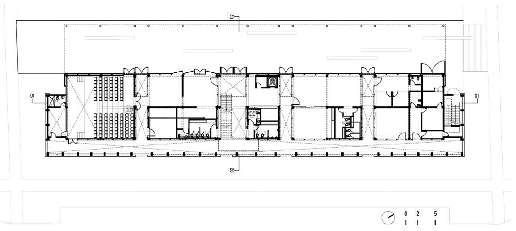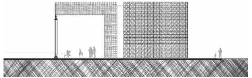 Sobre un recorrido preexistente entre un espacio público deportivo y una avenida principal, se conforma entre dos volúmenes una plaza cubierta en forma de logia, que refuerza la convicción de los arquitectos en comprometerse con la construcción de lo público, desde un sentido contemporáneo de la pluralidad. En palabras de los arquitectos Piñol y Ramírez, “el problema de la construcción de lo público necesariamente tiene una correspondencia espacial y territorial y la arquitectura está en la mediación de la construcción de lo público”.