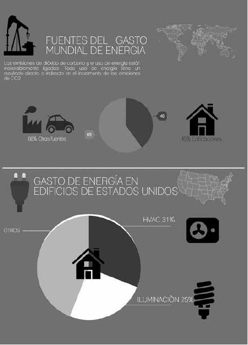 Antes de entrar en el detalle de las fachadas ventiladas, es importante entender la estrecha —pero no siempre evidente— relación entre energía, emisiones de dióxido de carbono y sector inmobiliario. Es preciso señalar que las emisiones de dióxido de carbono y el uso de energía están inexorablemente ligadas. Tal es el caso de los combustibles fósiles utilizados para proveer la mayor cantidad de energía del planeta; estos son cada vez más costosos y sus productos derivados contribuyen al calentamiento global y el cambio climático (fig. 1).