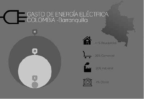 Infortunadamente al revisar el consumo energético de Colombia, la situación no cambia mucho; por ejemplo: en Bogotá el 57 % del gasto energético proviene del sector residencial; el 24 %, del comercio; el 9 %, de la industria, y el 4 %, del sector oficial. Caso similar se presenta en la cálida Barranquilla, donde también las viviendas consumen la mayor cantidad de energía: para ser más precisos el 41 % del total (fig. 2).7