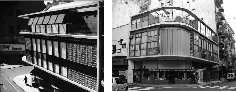 En el atelier del suizo conoció a Kurchan y Hardoy, por los que fue incentivado a emigrar para Argentina, como forma de driblar la Guerra Civil Española. En 1938 se instala en Buenos Aires, lugar donde desarrolla la célebre poltrona BFK y funda el Grupo Austral, responsable por la revista de vanguardia homónima. Al año siguiente, concluye el pequeño edificio en la Calle Suipacha, en sociedad con Vera Barros y Abel López Chas, en el cual realizó precursoras bóvedas de curvatura asimétrica para las cubiertas.4 El edificio albergaba comercio en la base y estudios “para artistas” con mezzanines (entresuelos) al gusto parisiense de comienzo de siglo XX. La extensa fachada acristalada fue el aspecto que encuadró el trabajo con lo que había de más actual en el Viejo Mundo. En la planta baja, las vitrinas presentaban sofisticados vidrios curvos. Delimitado por dos láminas horizontales paralelas, el cuerpo del edificio fue cubierto por extensos planos de vidrio, complementados por paredes de ladrillos de vidrio que remitían a Porte Molitor (1933) y, en consecuencia, a la Maison de Verre (1929), de Pierre Chareau (figs. 2 y 3).