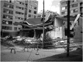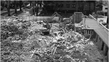 Por último, la acción final que llevó a la construcción del edificio que existe hoy en día ocurrió el 26 de diciembre de 2008, cuando la casa fue demolida en su totalidad. Esta fecha fue escogida, porque sabían que ningún vecino iba a estar en Bogotá en esos días y que volverían semanas después a encontrar el lote en escombros. Claramente el proceso no es limpio, y todo lo que hicieron los propietarios para deshacerse de la casa fue pasar por encima de normas, leyes, personas y valores. Utilizaron el dinero como acicate, y finalmente lograron lo que querían. La construcción del edificio inició casi tres años después, pues al haber tumbado una casa tan polémica, no fue fácil sacar una licencia de construcción.