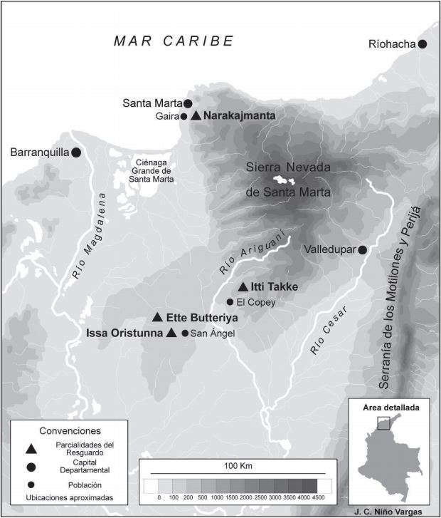 Los ette, también conocidos como chimilas, son uno de los varios pueblos indígenas del norte de Colombia. En la actualidad, ocupan el curso medio del río Ariguaní, al suroccidente de la Sierra Nevada de Santa Marta. La mayor parte de la población está establecida en un resguardo creado en la dé- cada de los ochenta, compuesto por dos grandes propiedades: Issa Oristunna y Ette Butteriya, en el en el Departamento del Magdalena. Recientemente se han sumado dos pequeños asentamientos en las estribaciones del macizo serrano: Narakajmanta e Itti Takke (fig. 1). Entre todos albergan unas 1200 personas y a esto hay que sumar pequeños grupos residentes en pueblos vecinos.[9]