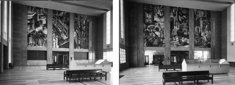 La combinación de algunos elementos relacionados con una experiencia vanguardista anterior del pintor y otros elementos que denunciaban un sentido de la situación cultural actual reproduce cierta tensión que estuvo patente en la escritura de Almada de los años 1910-1920. En textos como “A engomadeira” o “A cena do ódio”, por ejemplo, el artista entendía la experiencia moderna como irremediablemente subjetiva y fragmentada, a la vez que se conectaba a un tiempo y espacio determinados. En el arte público creado por Almada en las siguientes décadas nos encontramos dos atributos que caracterizan la escritura vanguardista de los tiempos de Orpheu: la especificidad del lugar y la importancia subjetiva de quien crea la imagen representada.5