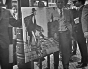 Pessoa (el cuadro irónicamente accidentado por el ritmo frenético de la ciudad cuando fue arrojado por un autobús) (fig. 9). El llevarse la obra a la calle para que sea vista por el público que pasa confirma el importante lugar que ocupa Almada en ese momento, porque muchos de los que se detienen a ver estos cuadros admiten que no es la primera vez que contemplan una obra del maestro; para otros, sin embargo, estos cuadros y el autor representan una completa novedad.