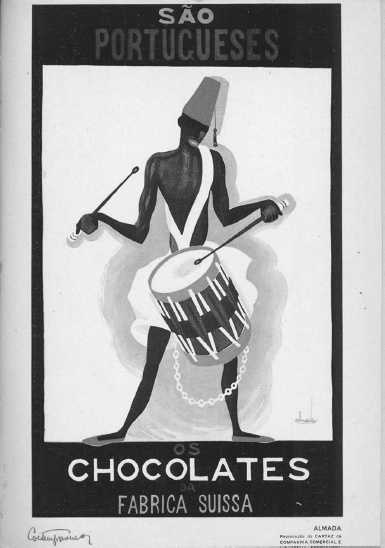 de diversas empresas comerciales de Lisboa. Dos años antes de la aparición de la revista de literatura Orpheu (1915), decoró la Sastrería Cunha, en Lisboa, con cuatro grandes pinturas (1913). Estos encargos, como decoraciones destinadas a las paredes de un espacio para uso pública, constituyen su primera intervención artística en el tejido urbano de la capital portuguesa. Los demás encargos de esta misma época pertenecían a géneros menos permanentes como el del afiche o de la publicidad. Además de contribuir ávidamente al contenido de la revista Contemporânea (1922 a 1926) con poesía e ilustraciones, Almada diseñó cuatro de sus portadas y las páginas incluyeron publicidad de su autoría para la Confitería Suiza (n.° 4) (fig. 3). En la década siguiente, también produjo carteles publicitarios para una de las películas más populares de la época (A canção de Lisboa [La canción de Lisboa]), y bajo la invitación del SPN, aceptó pedidos para dibujar sellos y carteles de propaganda política.3 Si bien muchos de estos primeros encargos fueron más o menos efímeros, conservados solo como imágenes de archivo o catálogo, a partir de mediados de la misma década, Almada comenzó a recibir invitaciones para participar en proyectos más grandes de larga duración. El presente artículo presenta algunos de estos proyectos dirigidos por Almada entre 1934 y 1948, con el objetivo de analizar y comentar su valor estético y comunicativo teniendo en cuenta su condición de encargo y su transformación en “verdaderas obras”. Al explorar la tensión entre estos términos, espero llegar a algunas conclusiones más comprensivas sobre la obra almadiana en general, ya que este trabajo busca ayudar a identificar algunos de sus aspectos temáticos y formales más eficaces y originales, también presentes en su prosa y poesía, así como en gran parte de su producción gráfica, ya sea diseño o pintura. Debido a su tamaño y su perdurabilidad, algunas de estas intervenciones públicas se han transformado en obras y se han conservado hasta nuestros días. Los encargos aceptados por Almada para decorar el interior y el exterior de los edificios tienen, por definición, una función diferente a los carteles y publicidad, y aunque algunos de ellos no se hayan conservado hasta nuestros días, el público todavía puede visitar un gran número de estos lugares. De hecho, estas obras forman parte de lo cotidiano urbano y condicionan la experiencia colectiva de vivir la ciudad.