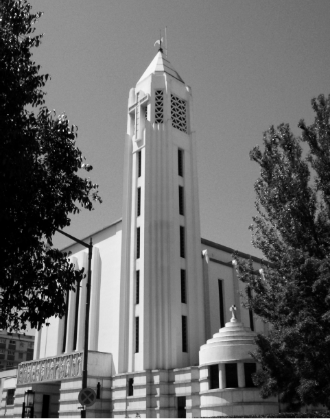 Este es el caso, sobre todo, de las muchas colaboraciones de Almada con Porfirio Pardal Monteiro, uno de los arquitectos portugueses más importantes y productivos de la primera mitad del siglo XX. Porfirio Pardal Monteiro es autor de más de veinte edificios en Lisboa, concebidos entre 1929 y 1957. Muchos de estos proyectos contribuyeron a la transformación de la capital portuguesa durante las primeras décadas del Gobierno del Estado Novo (1933-1974) de António de Oliveira Salazar. A lo largo de casi treinta años, Almada aceptó la invitación para decorar el interior y el exterior de siete edificios públicos de rasgos modernistas construidos en Lisboa por Pardal Monteiro. Desde el primer encargo que aceptó, los vitrales de la Iglesia de Nuestra Señora de Fátima (1938) (fig. 4), Almada reveló, en estas colaboraciones, el dominio de un proceso de negociación sutil entre una mirada que confirma el espíritu “oficial” del encargo y la visión hacia la inclusión de elementos inesperados que traducen una experiencia creativa más individual.