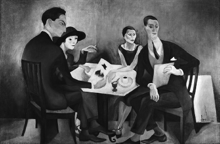 Por ejemplo, en 1925, cuando es invitado a colaborar en la decoración del café A Brasileira do Chiado, Almada Negreiros se autorretrata alrededor de una mesa con un grupo de artistas (Aurora Gil, Julia de Aguilar y Dória Nazaré) y ahí resalta sus expresiones. Los cafés, en los años veinte, eran escenarios de discusión y de encuentro de quienes compartían las mismas ideas y los mismos ideales.