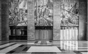 Es posible hacer un recorrido de Almada Negreiros por la ciudad de Lisboa a través de las obras plásticas que creó para diversos espacios públicos y particulares.7 De hecho, en la afirmación de Ellen Sapega: “ningún otro artista del siglo XX tuvo más encargos que Almada”,8 lo que también fue posible gracias a la relación de amistad entre Almada Negreiros y algunos de los arquitectos que ejecutaban obras para el Estado portugués.
