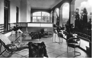 Precisamente durante este período, foi publicado o romance A montanha mágica (1924), que se tornou uma autêntica síntese emblemática, na esfera literária, da visão da tuberculose do ponto de vista médico, social e até espiritual. Já na óptica arquitetónica, o autor introduzia claras referências ao mobiliário e aos materiais usados na construção e na decoração, como os “móveis brancos e práticos, papéis de parede igualmente brancos, resistentes e laváveis, um oleado limpo a cobrir o soalho, e cortinas de linho, bordadas de maneira simples e graciosa, conforme o gosto moderno”.8