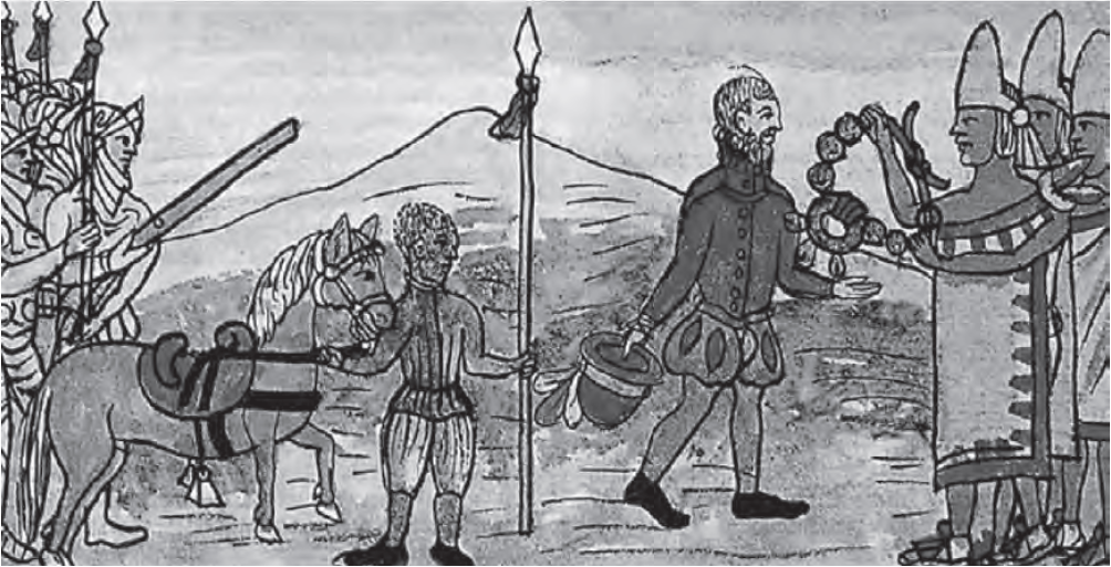 Veníades del cielo, abaxábades de allá rayos y relámpagos y truenos con que hacíades temblar la tierra y estremecer á los nuestros los corazones, y matábades, sin saber ellos cómo, al que os páresela ó enojaba en cualquier manera. Decían también que con esas vuestras espadas de hierro dábades tan grandes heridas que partíades al hombre por medio, y punzábades de tal manera con ellas que en un punto matábades al que así heríades.8