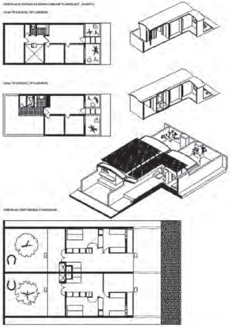 Esta estrategia es, en el fondo, similar a otras que pueden encontrarse en bóvedas en muchas naves del gótico. Su primera intención, tal vez, fuera meramente estructural; pero su vínculo con la tendencia a la permutación de módulos, propia de la arquitectura de los años sesenta, es evidente, como también lo son sus repercusiones tanto en la economía de construcción como en la trama urbana. Con la planta se aprecia, por ejemplo, cómo se rotaron algunas unidades para distribuir los conjuntos en forma de U o S, permitiendo así el mencionado ahorro en las estructuras portantes, y generando además subdivisiones urbanísticas más orgánicas y diferenciadas, propias de un urbanismo que aún estaba por llegar.