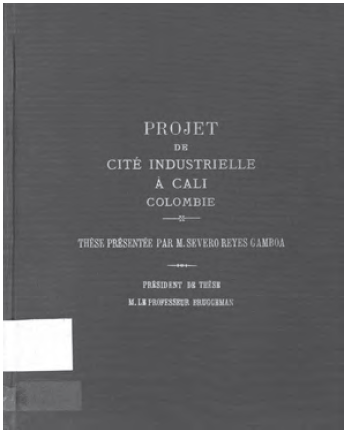 La tesis de Severo Reyes, titulada Projet de Cité Industrielle à Cali (fig. 9) es un documento de 176 páginas, organizada en dieciocho capítulos, y que a diferencia de las otras tesis de estudiantes colombianos, presenta 28 láminas que incluyen: planos sobre el crecimiento urbano de Cali; planos de localización del proyecto propuesto por el autor; planos de localización de equipamientos, vías y servicios; plantas y fachadas de varios tipos de vivienda para la nueva ciudad industrial; entre otros.