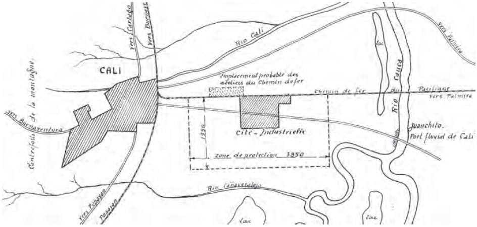 El proyecto de una ciudad industrial en Cali, que ahora presentamos aquí, no es un proyecto cualquiera surgido con motivo de nuestros estudios en el Institut d’Urbanisme; se trata, en cambio, de un proyecto que ha madurado en nuestra mente desde hace varios años luego de una reunión que tuvo lugar en Cali, con importantes personalidades del Departamento del Valle del Cauca. Dicha reunión, presidida por el señor Director de Servicios Públicos Municipales de Cali, contó con la presencia de numerosos directores de empresas e industrias de la región, de personalidades de la misma ciudad, y del Ingeniero Director de la Compañía de Ferrocarriles del Pacifico.30
