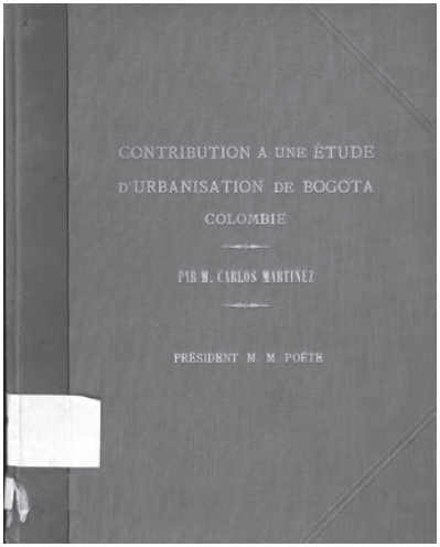 Sin duda, con Contribution à une étude d’urbanisation de Bogota, Carlos Martínez intenta sentar un referente en la construcción de una historia de Bogotá, inspirado por el enfoque vitalista propio del pensamiento de Poëte, el cual a la postre sería desplazado progresivamente por la concepción que Lavedan profesaría en el IUUP privilegiando una visión de la producción de formas urbanas centrada en el rol de sus actores27 —évolution urbaine e histoire de villes, respectivamente—.