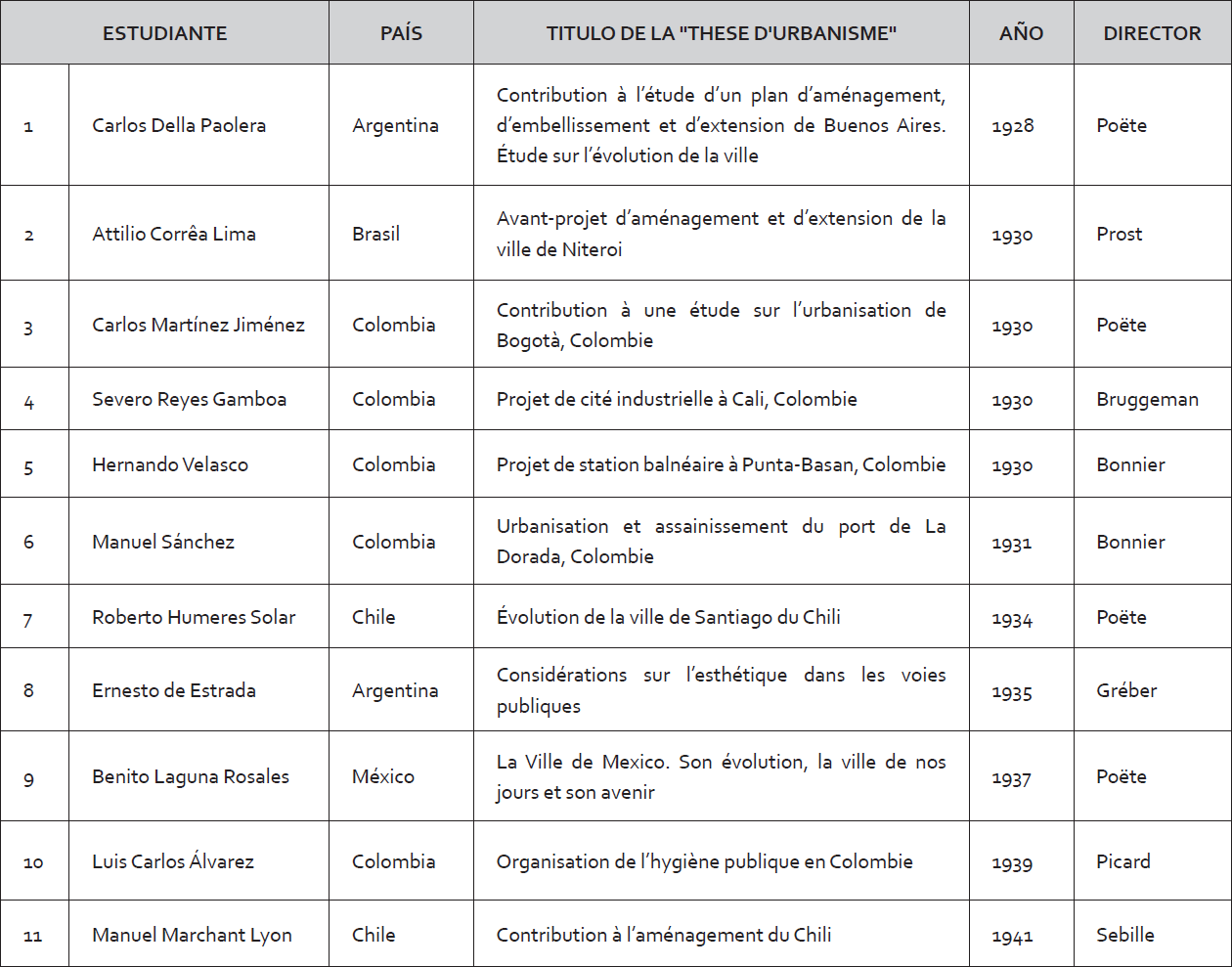 Además de la presencia en aquellos años de arquitectos-urbanistas europeos que incidieron en el desarrollo de varias ciudades latinoamericanas —por ejemplo, el austriaco Karl Brunner, en Santiago y Bogotá—, fue muy importante en la mayoría de los casos el retorno a sus países de estos jóvenes urbanistas, no solo para concebir proyectos, sino sobre todo para alimentar con los conocimientos adquiridos en el IUUP y en otras instituciones francesas el debate vigente en torno al urbanismo.