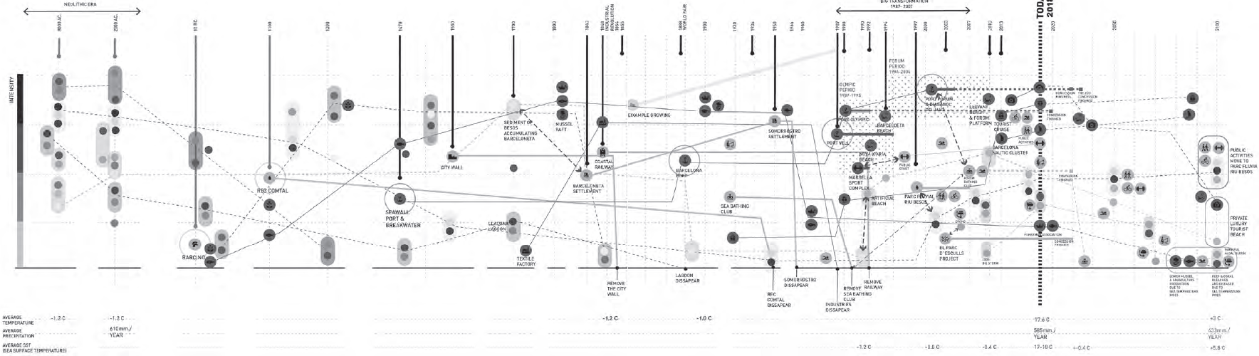 Aunque la propuesta ganadora en este caso fue la de OMA, las de los equipos de Allen-Corner-Lister, así como la de Bernard Tschumi, han tenido una importante repercusión en el campo de la enseñanza y la práctica de la planificación desde el paisaje. Estos proyectos han sido precursores en reclamar la preeminencia de los diseños basados en el entendimiento de los sistemas y sus procesos, incluso abrazando cierta indeterminación formal a favor de la definición de estrategias y tácticas de adaptación y evolución en el tiempo. Se podría decir que, desde entonces, se ha generado una tipología de proyectos, vinculados principalmente a los grandes parques, en los que su concepción presenta unos retos específicos de cara a su sostenibilidad a largo a plazo en términos de diseño, planificación, gestión y mantenimiento. Retos desde los que se expresa con claridad el potencial de trabajar con los procesos, ecológicos y programáticos de los sistemas socioecológicos. Este tipo de proyectos se definen mediante diagramas detallados de fases, el diseño de hábitats para la flora y la fauna, la siembra de sucesión y el diseño de los sistemas hidrológicos, así como la definición de diferentes regímenes programáticos y de planificación. Se expresan a través de diagramas que, aunque inicialmente abruman por su excesiva información, persiguen la comprensión de las enormes complejidades que enfrenta cualquier trabajo a esta escala espaciotemporal. Todos ellos llaman la atención sobre el complejo entramado resultado de las ecologías naturales con las capas sociales, culturales e infraestructurales, de la ciudad contemporánea.