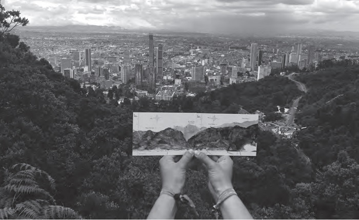 La visión del paisaje es una construcción permanente, una mirada en continua transformación, que depende del estado de ánimo de cada receptor y amerita, en varios casos, una resignificación. Por ejemplo, el crecimiento y las dinámicas urbanas que ha tenido Bogotá han afectado directamente la percepción frente al paisaje de los cerros y frente a la ciudad misma; es pro- bable que esta sea una visión arraigada desde la época de la Colonia, ya que las raíces de la desvalorización del paisaje natural encuentran su origen en las directrices de fundación de las ciudades del siglo XVI, en las que el paisaje de bosque era considerado simplemente una fuente de materia prima para el consumo humano.[21] La construcción del paisaje, a partir de diversas miradas, es tan compleja como las experiencias particulares del ser humano.