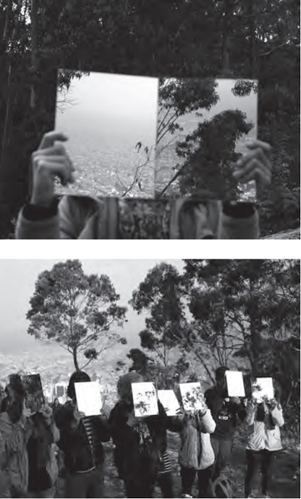 ¿Es factible integrar metodologías de valoración subjetiva de los micropaisajes para tenerlas en cuenta en la toma de decisiones? ¿Se puede, desde las miradas privadas, construir cualidades y potenciales generales? El Observatorio busca involucrar a los ciudadanos en la construcción de los imaginarios de una ciudad pluricultural, amable e integrada con su entorno, consciente de su territorio a partir de la exploración de metodologías que permitan incorporar y evidenciar esta relación. Las experiencias de mapeo participativo se han extendido en América Latina desde inicios del 2000,[23] con el fin de incorporar visiones de los actores en los procesos de ordenamiento territorial. Esta metodología permite entender percepciones aparentemente negativas de un paisaje, al dejar en evidencia relaciones que permanecen ocultas o cuya lectura desde lo visual no es posible. En este sentido, es importante destacar la relación entre el paisaje y la cartografía, ya que ambos dispositivos se valen de representaciones visuales generadas a partir de la experiencia y requieren la mirada para su construcción. “El mapa colectivo y el paisaje tendrían una misma base conceptual, en donde se incluye un sujeto colectivo que los construye, [y,] a su vez, los legitima”.[24] La cartografía ciudadana puede ser una de las múltiples estrategias en el marco de la investigación que adelanta el Observatorio; complejizarla y enriquecerla, de acuerdo con el contexto bogotano, puede ser un aporte al proceso de planificación.