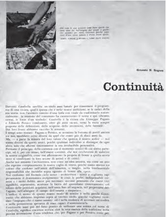 “Continuidad, más allá del hecho práctico de utilizar un título con el nombre de “Casabella”, significa consciencia histórica; esto es la verdadera esencia de la tradición en la precisa aceptación de una tendencia que, para Pagano y Persico, como para nosotros, está en la eterna variedad del espíritu opuesto a todo formalismo pasado y presente.”3