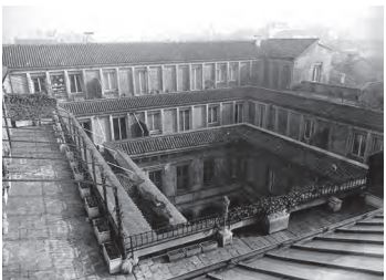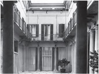 En el Palazzo Ponti (1950) y la Palazzina Mayer (1960) realizan una restitución tipológica del cortile. En el primero, mediante la eliminación de la sobrelevación decimonónica y disposición de unos apartamentos escalonados en torno al patio —para preservar la escala y la “autenticidad” espacial—, compuestos por una serie de pilastraslosas estructurales que siguen las cadencias del patio, que le confieren una nueva unidad plástica y expresiva, deslindando sutilmente las partes nuevas respecto a las preexistentes. En la Palazzina Mayer (1960) destaca el afinado y creativo diseño de cerrajerías y carpinterías, y los grafitis de Saúl Steinbergen en el atrio como un ejercicio de integración de las artes.
