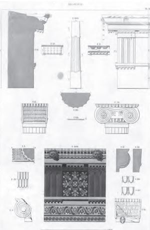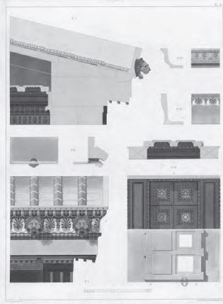 Esta dimensión no estuvo, sin embargo, del todo ausente en las publicaciones de Percier y Fontaine, quienes para su recopilación sobre los palacios de Roma (de 1798) ya habían solicitado reseñas históricas al arquitecto y miembro de la Académie des Beaux-Arts, Léon Dufourny.17 Pero Hittorff, quien asumía el “doble propósito de proporcionar nuevos hechos a la historia general del arte y de ofrecer a los arquitectos un afortunado capítulo de inspiraciones compatibles con nuestras costumbres, con nuestro clima y con el empleo de nuestros materiales”,18 no se contentaba ya con unas cuantas explicaciones que simplemente completaran los modelos gráficos. Tal y como lo expresa en el prefacio, Hittorff anhelaba dos objetivos concretos: “nos gusta creer que la descripción de las láminas y las importantes soluciones históricas que las acompañan serán apreciadas de la misma manera”.19
