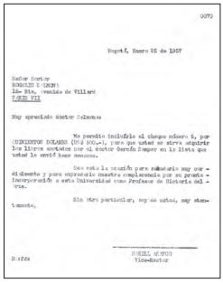 La universidad a la que llegó Salmona a finales de 1957 era joven. Fundada en 1948, los Andes carecía en sus inicios de los recursos visuales y bibliográficos necesarios para dictar cursos de historia de la arquitectura. De ahí que la propuesta de Salmona de consolidar un archivo de imágenes en las bibliotecas de Francia antes de su regreso haya sido acogida y financiada por las directivas de la universidad y de la facultad. Contó con el apoyo de Daniel Arango, que ocupaba la vicerrectoría, y de Germán Samper, que ejerció el cargo de decano de la Facultad de Arquitectura, entre 1956 y 1959, quienes autorizaron los giros para financiar el proyecto de documentación de la biblioteca y gestionaron el contrato de Salmona como profesor de tiempo completo de la universidad.