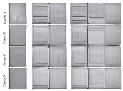 Con las existencias acopiadas se pudo establecer que fueron dos los tipos de insumos que constituyeron el archivo documental. El primero, en microfilms que se debían insertar entre dos láminas de vidrio. Salmona trajo parte de este montaje listo desde París y los materiales necesarios para continuar con el proceso en Colombia. El segundo insumo son las copias en negativo de los microfilms que son el contenido de las carpetas rescatadas.